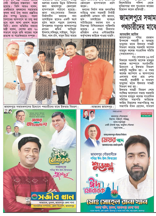"আজকের জামালপুর" জামালপুর, বাংলাদেশ থেকে মুদ্রিত ও প্রকাশিত দৈনিক সংবাদপত্র । The Daily Ajker Jamalpur. A daily newspaper of Jamalpur, Bandladesh.