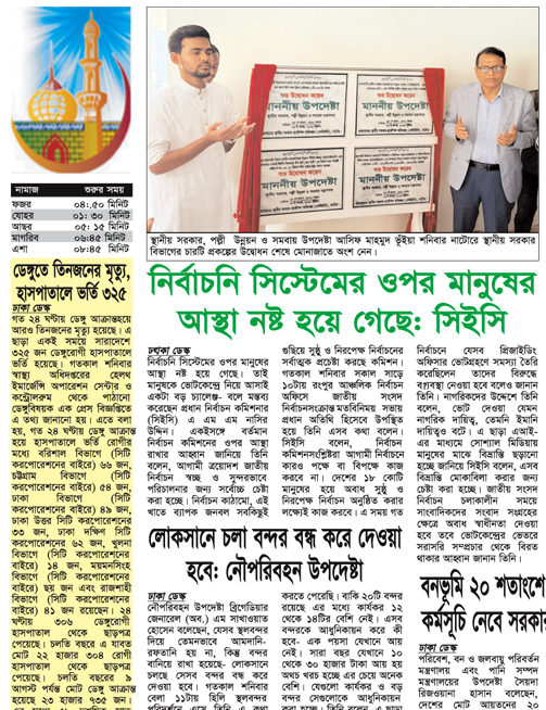 আপনি পড়ছেন ১০ আগস্ট, ২০২৫ তারিখের পুরাতন সংখ্যা। আজকের সংবাদ এখনো অন-লাইনে প্রকাশিত হয়নি, ০৮ অক্টোবর, ২০২৫ তারিখের খবর পড়তে অনুগ্রহ পূর্বক কিছু সময় পর আবার ভিজিট করুন।