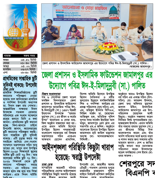 "আজকের জামালপুর" জামালপুর, বাংলাদেশ থেকে মুদ্রিত ও প্রকাশিত দৈনিক সংবাদপত্র । The Daily Ajker Jamalpur. A daily newspaper of Jamalpur, Bandladesh.