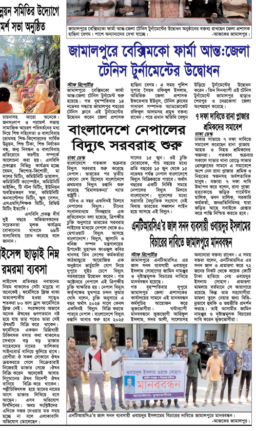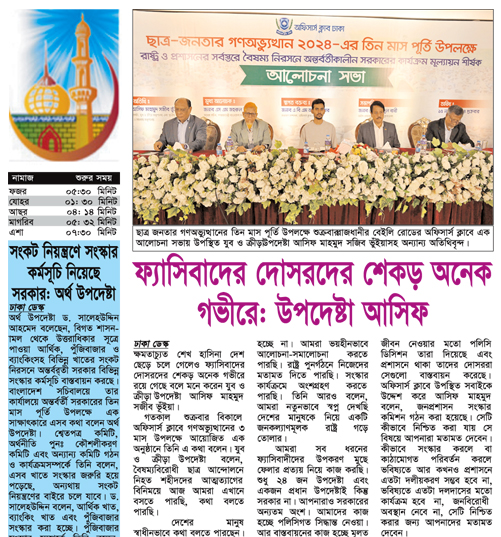 আপনি পড়ছেন ১৬ নভেম্বর, ২০২৪ তারিখের পুরাতন সংখ্যা। আজকের সংবাদ এখনো অন-লাইনে প্রকাশিত হয়নি, ০৮ অক্টোবর, ২০২৫ তারিখের খবর পড়তে অনুগ্রহ পূর্বক কিছু সময় পর আবার ভিজিট করুন।