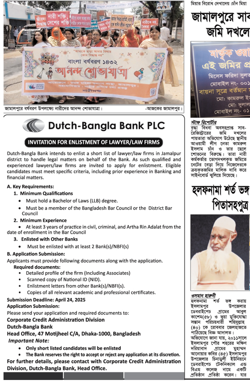 আপনি পড়ছেন ১৫ এপ্রিল, ২০২৫ তারিখের পুরাতন সংখ্যা। আজকের সংবাদ এখনো অন-লাইনে প্রকাশিত হয়নি, ০৮ অক্টোবর, ২০২৫ তারিখের খবর পড়তে অনুগ্রহ পূর্বক কিছু সময় পর আবার ভিজিট করুন।