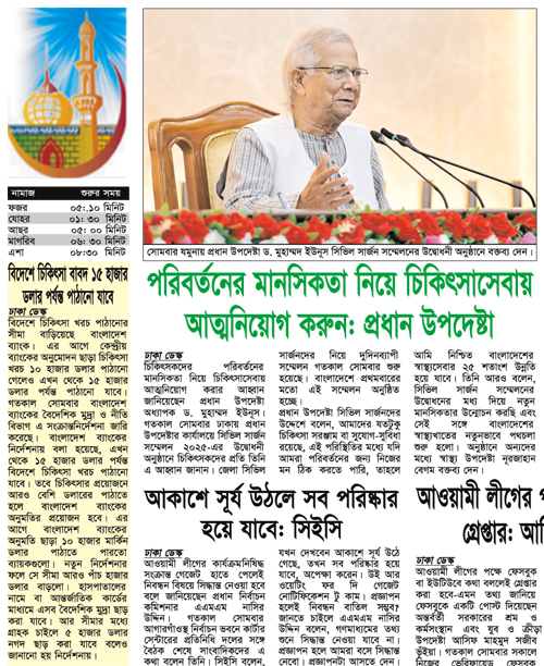 আপনি পড়ছেন ১৩ মে, ২০২৫ তারিখের পুরাতন সংখ্যা। আজকের সংবাদ এখনো অন-লাইনে প্রকাশিত হয়নি, ০৮ অক্টোবর, ২০২৫ তারিখের খবর পড়তে অনুগ্রহ পূর্বক কিছু সময় পর আবার ভিজিট করুন।
