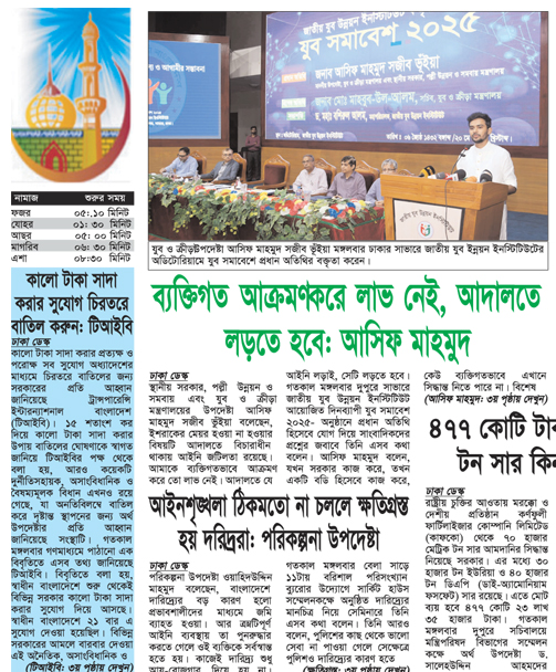 আপনি পড়ছেন ২১ মে, ২০২৫ তারিখের পুরাতন সংখ্যা। আজকের সংবাদ এখনো অন-লাইনে প্রকাশিত হয়নি, ০৮ অক্টোবর, ২০২৫ তারিখের খবর পড়তে অনুগ্রহ পূর্বক কিছু সময় পর আবার ভিজিট করুন।