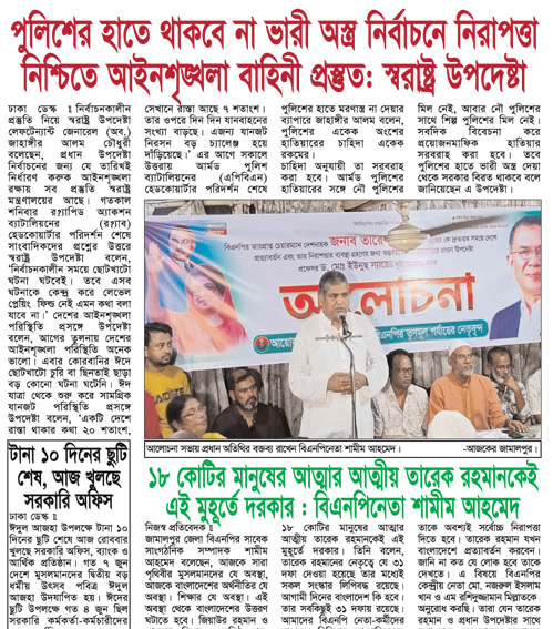 আপনি পড়ছেন ১৫ জুন, ২০২৫ তারিখের পুরাতন সংখ্যা। আজকের সংবাদ এখনো অন-লাইনে প্রকাশিত হয়নি, ০৮ অক্টোবর, ২০২৫ তারিখের খবর পড়তে অনুগ্রহ পূর্বক কিছু সময় পর আবার ভিজিট করুন।
