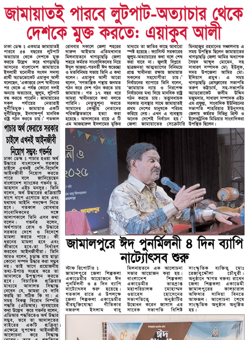 আপনি পড়ছেন ১৬ জুন, ২০২৫ তারিখের পুরাতন সংখ্যা। আজকের সংবাদ এখনো অন-লাইনে প্রকাশিত হয়নি, ০৮ অক্টোবর, ২০২৫ তারিখের খবর পড়তে অনুগ্রহ পূর্বক কিছু সময় পর আবার ভিজিট করুন।