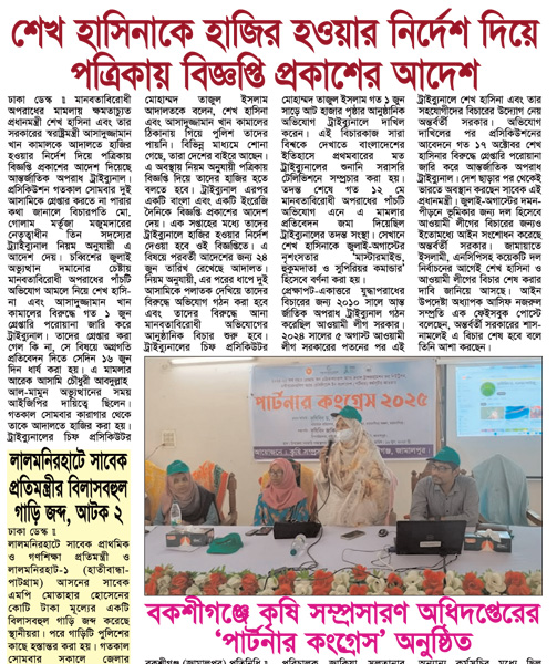 আপনি পড়ছেন ১৭ জুন, ২০২৫ তারিখের পুরাতন সংখ্যা। আজকের সংবাদ এখনো অন-লাইনে প্রকাশিত হয়নি, ০৮ অক্টোবর, ২০২৫ তারিখের খবর পড়তে অনুগ্রহ পূর্বক কিছু সময় পর আবার ভিজিট করুন।