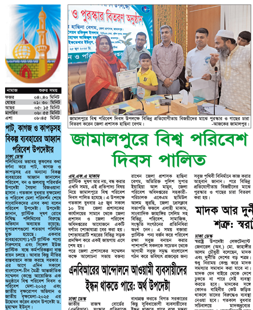 আপনি পড়ছেন ২৬ জুন, ২০২৫ তারিখের পুরাতন সংখ্যা। আজকের সংবাদ এখনো অন-লাইনে প্রকাশিত হয়নি, ০৮ অক্টোবর, ২০২৫ তারিখের খবর পড়তে অনুগ্রহ পূর্বক কিছু সময় পর আবার ভিজিট করুন।