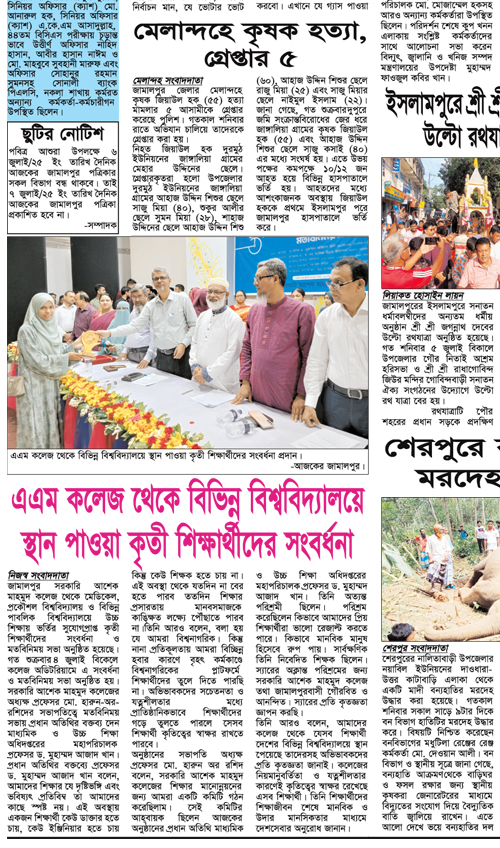 "আজকের জামালপুর" জামালপুর, বাংলাদেশ থেকে মুদ্রিত ও প্রকাশিত দৈনিক সংবাদপত্র । The Daily Ajker Jamalpur. A daily newspaper of Jamalpur, Bandladesh.