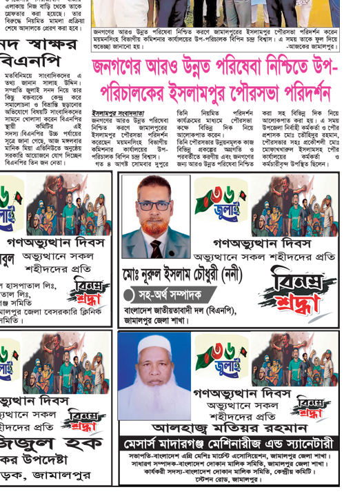 "আজকের জামালপুর" জামালপুর, বাংলাদেশ থেকে মুদ্রিত ও প্রকাশিত দৈনিক সংবাদপত্র । The Daily Ajker Jamalpur. A daily newspaper of Jamalpur, Bandladesh.