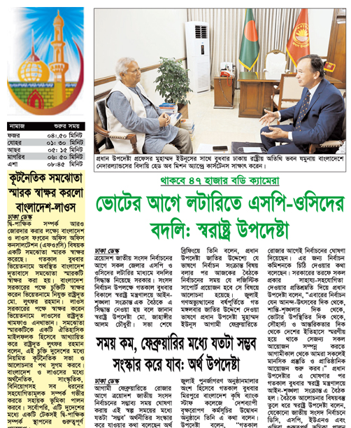 আপনি পড়ছেন ০৭ আগস্ট, ২০২৫ তারিখের পুরাতন সংখ্যা। আজকের সংবাদ এখনো অন-লাইনে প্রকাশিত হয়নি, ০৮ অক্টোবর, ২০২৫ তারিখের খবর পড়তে অনুগ্রহ পূর্বক কিছু সময় পর আবার ভিজিট করুন।