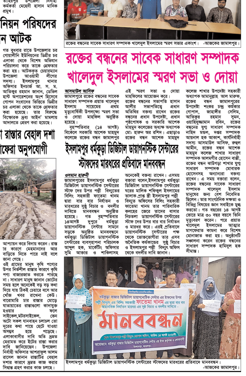 "আজকের জামালপুর" জামালপুর, বাংলাদেশ থেকে মুদ্রিত ও প্রকাশিত দৈনিক সংবাদপত্র । The Daily Ajker Jamalpur. A daily newspaper of Jamalpur, Bandladesh.