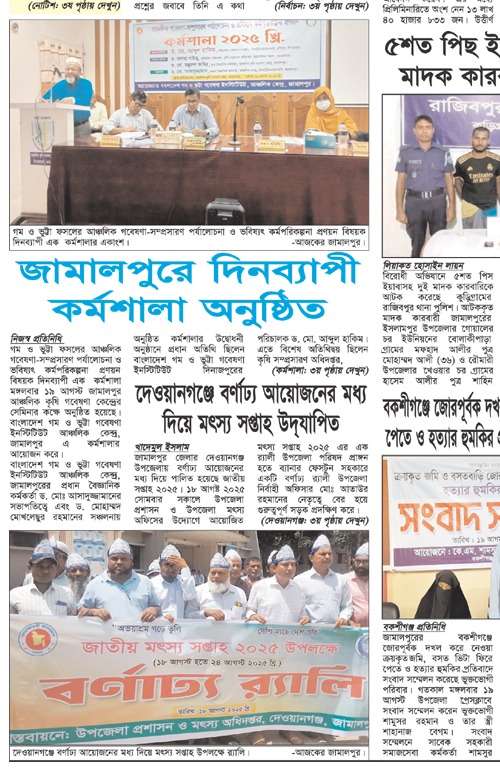 "আজকের জামালপুর" জামালপুর, বাংলাদেশ থেকে মুদ্রিত ও প্রকাশিত দৈনিক সংবাদপত্র । The Daily Ajker Jamalpur. A daily newspaper of Jamalpur, Bandladesh.