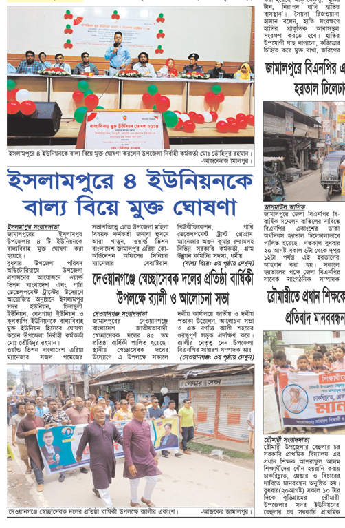 "আজকের জামালপুর" জামালপুর, বাংলাদেশ থেকে মুদ্রিত ও প্রকাশিত দৈনিক সংবাদপত্র । The Daily Ajker Jamalpur. A daily newspaper of Jamalpur, Bandladesh.
