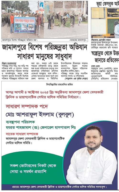 "আজকের জামালপুর" জামালপুর, বাংলাদেশ থেকে মুদ্রিত ও প্রকাশিত দৈনিক সংবাদপত্র । The Daily Ajker Jamalpur. A daily newspaper of Jamalpur, Bandladesh.
