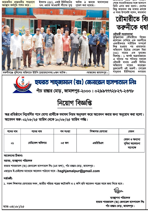 আপনি পড়ছেন ০৩ আগস্ট, ২০২৫ তারিখের পুরাতন সংখ্যা। আজকের সংবাদ এখনো অন-লাইনে প্রকাশিত হয়নি, ২২ নভেম্বর, ২০২৫ তারিখের খবর পড়তে অনুগ্রহ পূর্বক কিছু সময় পর আবার ভিজিট করুন।