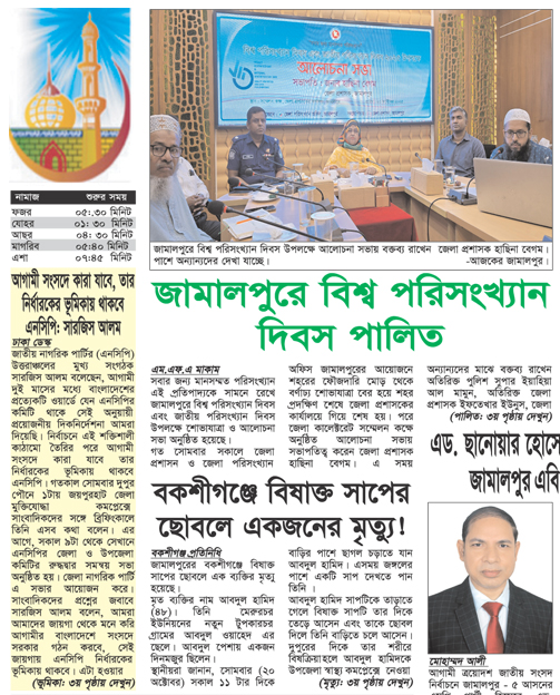 "আজকের জামালপুর" জামালপুর, বাংলাদেশ থেকে মুদ্রিত ও প্রকাশিত দৈনিক সংবাদপত্র । The Daily Ajker Jamalpur. A daily newspaper of Jamalpur, Bandladesh.