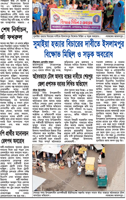 "আজকের জামালপুর" জামালপুর, বাংলাদেশ থেকে মুদ্রিত ও প্রকাশিত দৈনিক সংবাদপত্র । The Daily Ajker Jamalpur. A daily newspaper of Jamalpur, Bandladesh.