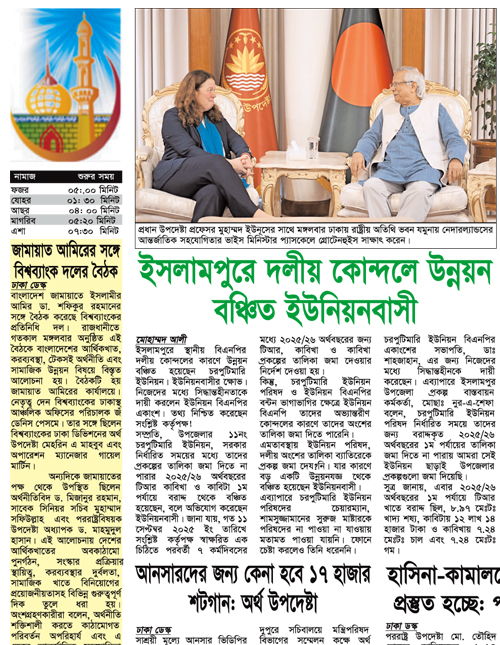 আপনি পড়ছেন ১৯ নভেম্বর, ২০২৫ তারিখের পুরাতন সংখ্যা। আজকের সংবাদ এখনো অন-লাইনে প্রকাশিত হয়নি, ২২ নভেম্বর, ২০২৫ তারিখের খবর পড়তে অনুগ্রহ পূর্বক কিছু সময় পর আবার ভিজিট করুন।