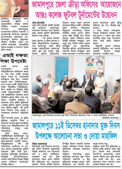"আজকের জামালপুর" জামালপুর, বাংলাদেশ থেকে মুদ্রিত ও প্রকাশিত দৈনিক সংবাদপত্র । The Daily Ajker Jamalpur. A daily newspaper of Jamalpur, Bandladesh.