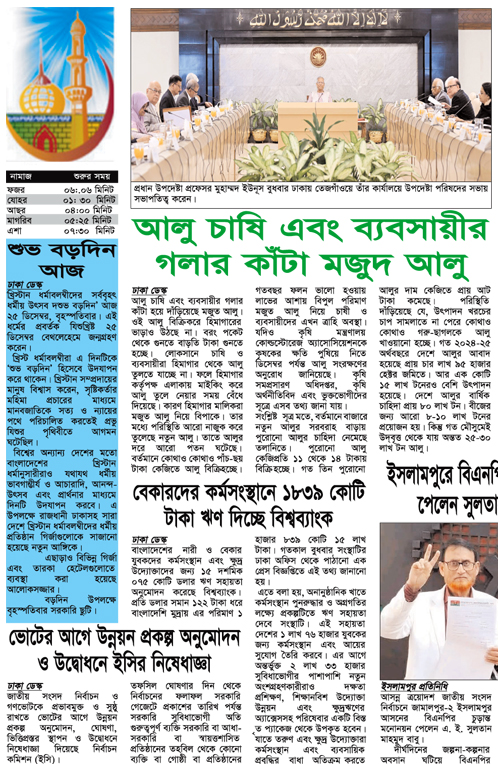 আপনি পড়ছেন ২৫ ডিসেম্বর, ২০২৫ তারিখের পুরাতন সংখ্যা। আজকের সংবাদ এখনো অন-লাইনে প্রকাশিত হয়নি, ২১ এপ্রিল, ২০২৬ তারিখের খবর পড়তে অনুগ্রহ পূর্বক কিছু সময় পর আবার ভিজিট করুন।