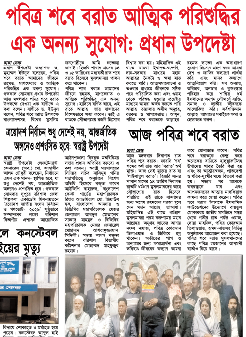 আপনি পড়ছেন ০৩ ফেব্রুয়ারি, ২০২৬ তারিখের পুরাতন সংখ্যা। আজকের সংবাদ এখনো অন-লাইনে প্রকাশিত হয়নি, ০৭ মার্চ, ২০২৬ তারিখের খবর পড়তে অনুগ্রহ পূর্বক কিছু সময় পর আবার ভিজিট করুন।