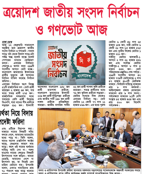 আপনি পড়ছেন ১২ ফেব্রুয়ারি, ২০২৬ তারিখের পুরাতন সংখ্যা। আজকের সংবাদ এখনো অন-লাইনে প্রকাশিত হয়নি, ১৬ এপ্রিল, ২০২৬ তারিখের খবর পড়তে অনুগ্রহ পূর্বক কিছু সময় পর আবার ভিজিট করুন।