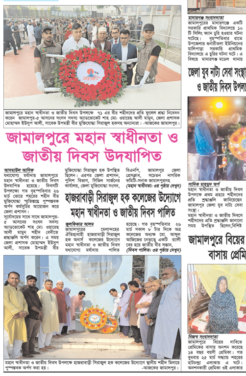 "আজকের জামালপুর" জামালপুর, বাংলাদেশ থেকে মুদ্রিত ও প্রকাশিত দৈনিক সংবাদপত্র । The Daily Ajker Jamalpur. A daily newspaper of Jamalpur, Bandladesh.