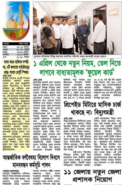 আপনি পড়ছেন ৩০ মার্চ, ২০২৬ তারিখের পুরাতন সংখ্যা। আজকের সংবাদ এখনো অন-লাইনে প্রকাশিত হয়নি, ১৫ এপ্রিল, ২০২৬ তারিখের খবর পড়তে অনুগ্রহ পূর্বক কিছু সময় পর আবার ভিজিট করুন।