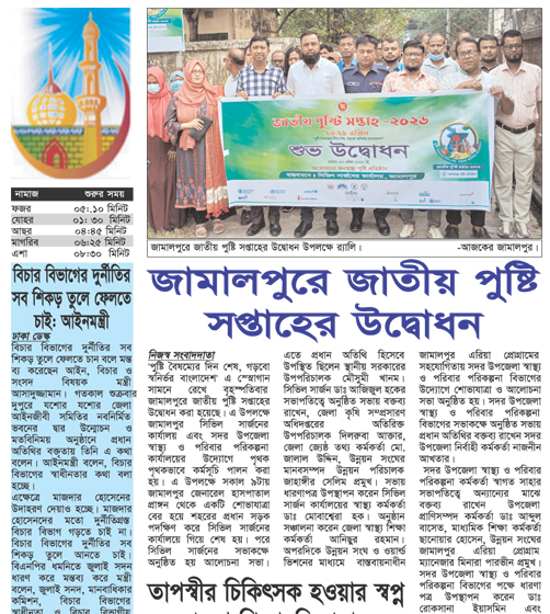 "আজকের জামালপুর" জামালপুর, বাংলাদেশ থেকে মুদ্রিত ও প্রকাশিত দৈনিক সংবাদপত্র । The Daily Ajker Jamalpur. A daily newspaper of Jamalpur, Bandladesh.