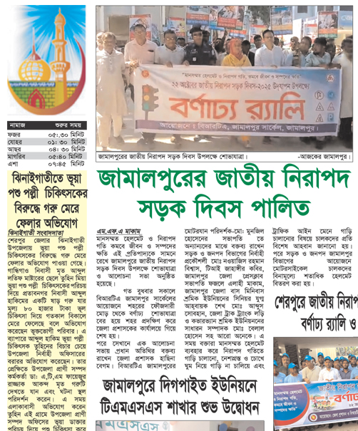 "আজকের জামালপুর" জামালপুর, বাংলাদেশ থেকে মুদ্রিত ও প্রকাশিত দৈনিক সংবাদপত্র । The Daily Ajker Jamalpur. A daily newspaper of Jamalpur, Bandladesh.
