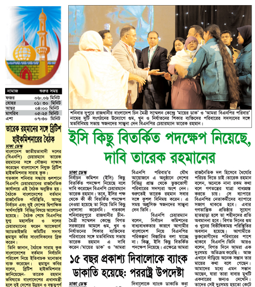 আপনি পড়ছেন ১৮ জানুয়ারি, ২০২৬ তারিখের পুরাতন সংখ্যা। আজকের সংবাদ এখনো অন-লাইনে প্রকাশিত হয়নি, ১৭ ফেব্রুয়ারি, ২০২৬ তারিখের খবর পড়তে অনুগ্রহ পূর্বক কিছু সময় পর আবার ভিজিট করুন।