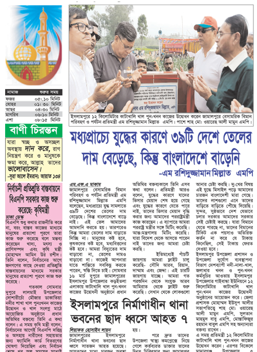আপনি পড়ছেন ১৭ মার্চ, ২০২৬ তারিখের পুরাতন সংখ্যা। আজকের সংবাদ এখনো অন-লাইনে প্রকাশিত হয়নি, ২৬ মার্চ, ২০২৬ তারিখের খবর পড়তে অনুগ্রহ পূর্বক কিছু সময় পর আবার ভিজিট করুন।